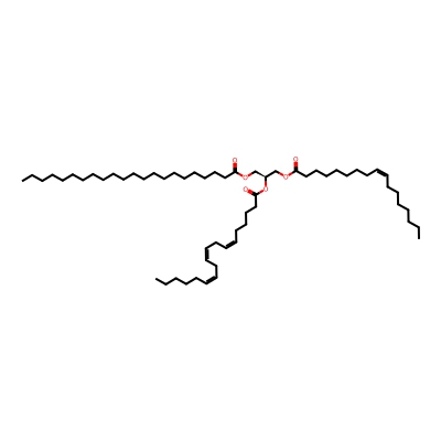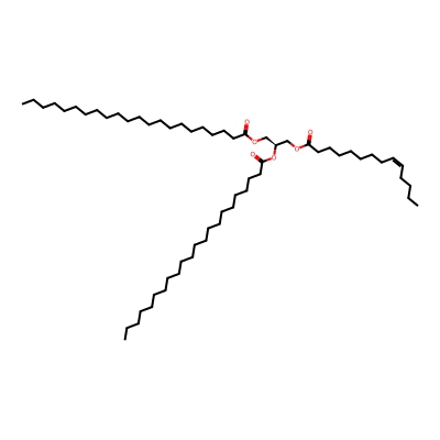 | CCSBASE_FFA232A7B9 | TG(58:1) | [M+NH4]+ | 962.9096 | 342.62 | CCCCCCCCCCCCCCCCCCCCCC(=O)OC[C@@H](COC(=O)CCCCCCC/C=C\CCCC)OC(=O)CCCCCCCCCCCCCCCCCCCCC | Lipids and lipid-like molecules | 1 | 19 | DT | single field | |