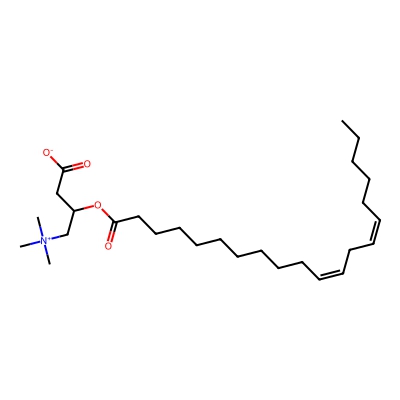 | CCSBASE_AAF9A1C465 | CAR(21:0) | [M]+ | 470.418 | 232.47 | CCCCCCCCCCCCCCCCCCCCC(=O)O[C@H](CC(=O)[O-])C[N+](C)(C)C | Lipids and lipid-like molecules | 1 | 20 | TIMS | single field, calibrated | |