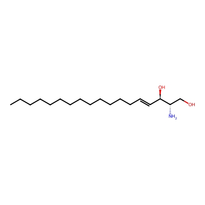| CCSBASE_BA995D57D3 | Sphingosine | [M+H]+ | 300.2902 | 186.0 | CCCCCCCCCCCCC/C=C/[C@H]([C@H](CO)N)O | Organic nitrogen compounds | 1 | 4 | DT | single field, calibrated with Agilent tune mix (Agilent) | |
