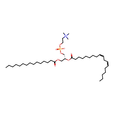 | CCSBASE_E699529DFB | PC(15:0/18:2) | [M+CH3COO]- | 802.547 | 283.03 | [C@](COP(=O)([O-])OCC[N+](C)(C)C)([H])(OC(CCCCCCC/C=C\C/C=C\CCCCC)=O)COC(CCCCCCCCCCCCCC)=O | Lipids and lipid-like molecules | -1 | 20 | TIMS | single field, calibrated | |