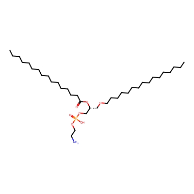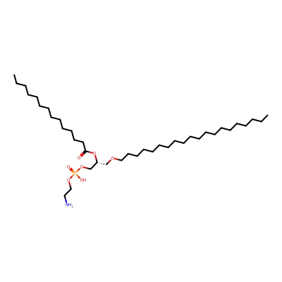 | CCSBASE_41B99631E2 | PE(o32:0) | [M+H]+ | 678.542 | 270.37 | CCCCCCCCCCCCCCCCOC[C@H](COP(=O)(O)OCCN)OC(=O)CCCCCCCCCCCCCCC | Lipids and lipid-like molecules | 1 | 20 | TIMS | single field, calibrated | |