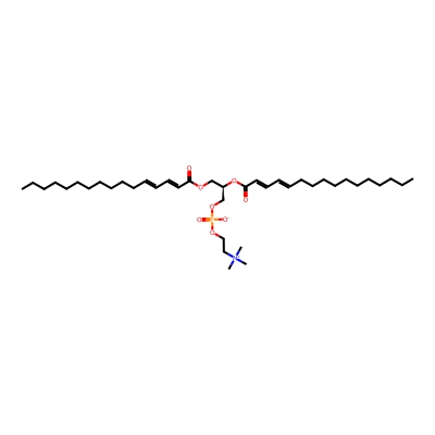 | CCSBASE_CFB0134ED1 | PC(16:2/16:2) | [M+H]+ | 726.502 | 275.56 | [C@](COP(=O)([O-])OCC[N+](C)(C)C)([H])(OC(/C=C/C=C/CCCCCCCCCCC)=O)COC(/C=C/C=C/CCCCCCCCCCC)=O | Lipids and lipid-like molecules | 1 | 20 | TIMS | single field, calibrated | |
