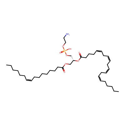 | CCSBASE_85C8503234 | PE(17:0/20:4) | [M+H]+ | 754.535 | 280.01 | [C@](COP(O)(=O)OCCN)([H])(OC(CCC/C=C\C/C=C\C/C=C\C/C=C\CCCCC)=O)COC(CCCCCCCCCCCCCCCC)=O | Lipids and lipid-like molecules | 1 | 20 | TIMS | single field, calibrated | |