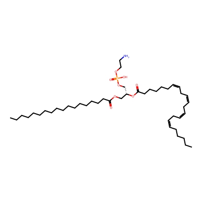 | CCSBASE_4A04F3A5E5 | PE(18:0/22:4) | [M+H]+ | 796.583 | 289.24 | [C@](COP(=O)(O)OCCN)([H])(OC(CCCCC/C=C\C/C=C\C/C=C\C/C=C\CCCCC)=O)COC(CCCCCCCCCCCCCCCCC)=O | Lipids and lipid-like molecules | 1 | 20 | TIMS | single field, calibrated |