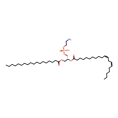 | CCSBASE_CBD11336C1 | PE(18:0/20:2) | [M+H]+ | 772.574 | 284.87 | [C@](COP(=O)(O)OCCN)([H])(OC(CCCCCCCCC/C=C\C/C=C\CCCCC)=O)COC(CCCCCCCCCCCCCCCCC)=O | Lipids and lipid-like molecules | 1 | 20 | TIMS | single field, calibrated | |