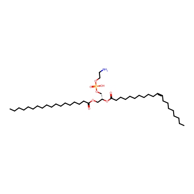 | CCSBASE_E67F494B6F | PE(18:0/20:1) | [M+H]+ | 774.593 | 283.73 | [C@](COP(=O)(O)OCCN)([H])(OC(CCCCCCCCC/C=C\CCCCCCCC)=O)COC(CCCCCCCCCCCCCCCCC)=O | Lipids and lipid-like molecules | 1 | 20 | TIMS | single field, calibrated | |