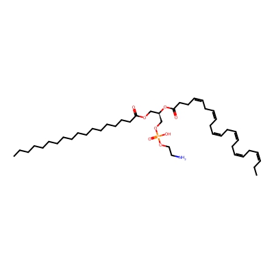 | CCSBASE_153B0860CE | PE(18:1/20:1) | [M+H]+ | 772.583 | 285.36 | [C@](COP(=O)(O)OCCN)([H])(OC(CCCCCCCCC/C=C\CCCCCCCC)=O)COC(CCCCCCC/C=C\CCCCCCCC)=O | Lipids and lipid-like molecules | 1 | 20 | TIMS | single field, calibrated | |