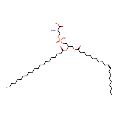 | CCSBASE_46816A3E55 | PS(41:1) | [M+Na]+ | 882.62 | 300.21 | CCCCCCCCCCCCCCCCCCCCC(=O)O[C@H](COC(=O)CCCCCCCCC/C=C\CCCCCCCC)COP(=O)(O)OC[C@@H](C(=O)O)N | Lipids and lipid-like molecules | 1 | 20 | TIMS | single field, calibrated |