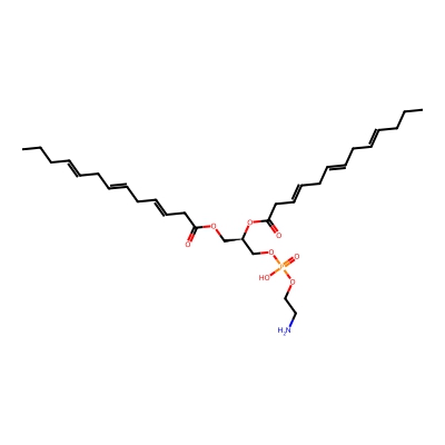 | CCSBASE_A94D49EE8C | PE(28:5) | [M+K]+ | 664.34 | 250.9 | CCCCC=CCC=CCC=CCC(=O)O[C@H](COC(=O)CC=CCC=CCC=CCC=CC)COP(=O)(O)OCCN | Lipids and lipid-like molecules | 1 | 1 | DT | stepped-field | |