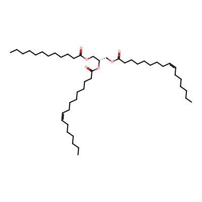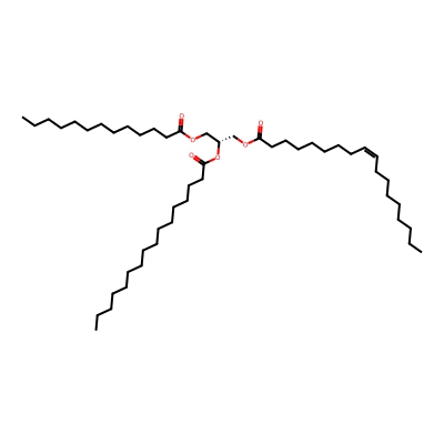 | CCSBASE_995F38419B | TG(13:0/16:0/18:1) | [M+Na]+ | 813.699 | 300.46 | C(OC(=O)CCCCCCC/C=C\CCCCCCCC)[C@]([H])(OC(CCCCCCCCCCCCCCC)=O)COC(CCCCCCCCCCCC)=O | Lipids and lipid-like molecules | 1 | 20 | TIMS | single field, calibrated | |