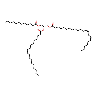 | CCSBASE_30B6785965 | TG(12:0/19:1/22:2) | [M+Na]+ | 893.74 | 308.99 | C(OC(=O)CCCCCCCCCCC/C=C\C/C=C\CCCCC)[C@]([H])(OC(CCCCCCC/C=C\CCCCCCCCC)=O)COC(CCCCCCCCCCC)=O | Lipids and lipid-like molecules | 1 | 20 | TIMS | single field, calibrated | |