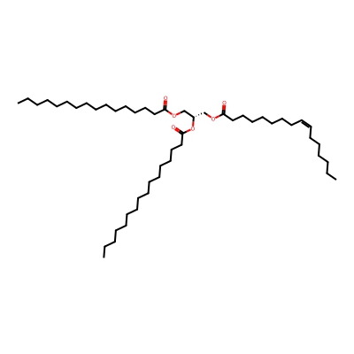 | CCSBASE_AB2F8602A6 | TG(16:0/16:0/16:1) | [M+Na]+ | 827.709 | 308.05 | C(OC(=O)CCCCCCC/C=C\CCCCCC)[C@]([H])(OC(CCCCCCCCCCCCCCC)=O)COC(CCCCCCCCCCCCCCC)=O | Lipids and lipid-like molecules | 1 | 20 | TIMS | single field, calibrated |