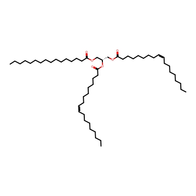 | CCSBASE_E691C7348D | TG(16:0/18:1/18:1) | [M+Na]+ | 881.76 | 313.41 | C(OC(=O)CCCCCCC/C=C\CCCCCCCC)[C@]([H])(OC(CCCCCCC/C=C\CCCCCCCC)=O)COC(CCCCCCCCCCCCCCC)=O | Lipids and lipid-like molecules | 1 | 20 | TIMS | single field, calibrated | |