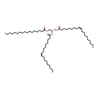 | CCSBASE_3A229CFDB4 | TG(17:0/18:1/19:1) | [M+Na]+ | 909.792 | 318.84 | C(OC(=O)CCCCCCC/C=C\CCCCCCCCC)[C@]([H])(OC(CCCCCCC/C=C\CCCCCCCC)=O)COC(CCCCCCCCCCCCCCCC)=O | Lipids and lipid-like molecules | 1 | 20 | TIMS | single field, calibrated | |