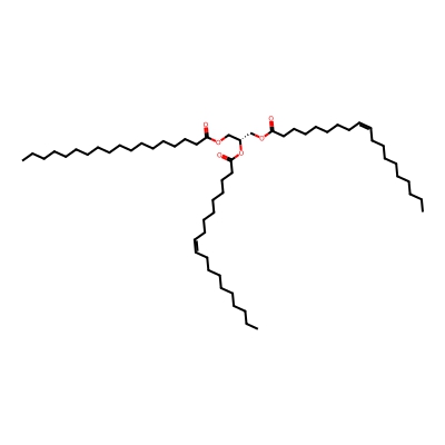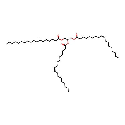 | CCSBASE_AD7B30ADF7 | TG(18:0/18:1/18:1) | [M+Na]+ | 909.78 | 319.65 | C(OC(=O)CCCCCCC/C=C\CCCCCCCC)[C@]([H])(OC(CCCCCCC/C=C\CCCCCCCC)=O)COC(CCCCCCCCCCCCCCCCC)=O | Lipids and lipid-like molecules | 1 | 20 | TIMS | single field, calibrated | |