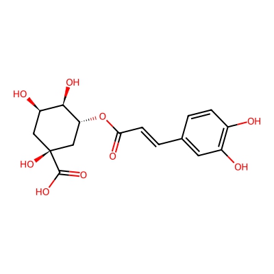 | CCSBASE_D2EEEB60C6 | Chlorogenic acid | [M+H]+ | 355.1029 | 185.1 | C1[C@H]([C@H]([C@@H](C[C@@]1(C(=O)O)O)OC(=O)/C=C/C2=CC(=C(C=C2)O)O)O)O | Organic oxygen compounds | 1 | 4 | DT | single field, calibrated with Agilent tune mix (Agilent) | |