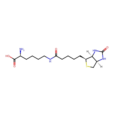 | CCSBASE_55693B33F5 | Biocytin | [M+H]+ | 373.1909 | 186.8 | C1[C@H]2[C@@H]([C@@H](S1)CCCCC(=O)NCCCC[C@@H](C(=O)O)N)NC(=O)N2 | Organoheterocyclic compounds | 1 | 4 | DT | single field, calibrated with Agilent tune mix (Agilent) | |