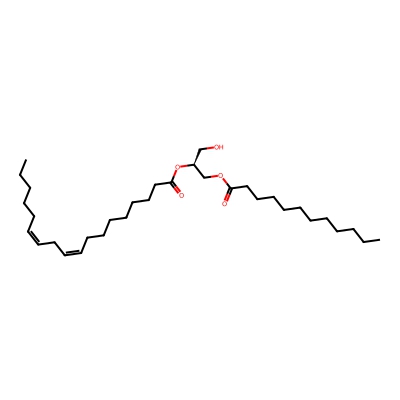 | CCSBASE_596639A581 | DG(12:0/18:2) | [M+NH4]+ | 554.479 | 246.54 | OC[C@]([H])(OC(CCCCCCC/C=C\C/C=C\CCCCC)=O)COC(CCCCCCCCCCC)=O | Lipids and lipid-like molecules | 1 | 20 | TIMS | single field, calibrated | |