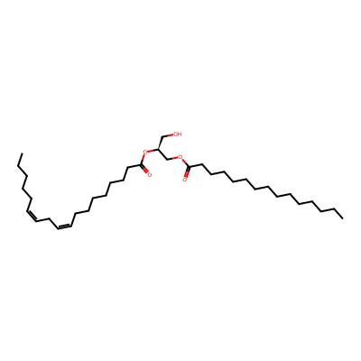 | CCSBASE_61115FCD21 | DG(15:0/18:2) | [M+NH4]+ | 596.522 | 255.77 | OC[C@]([H])(OC(CCCCCCC/C=C\C/C=C\CCCCC)=O)COC(CCCCCCCCCCCCCC)=O | Lipids and lipid-like molecules | 1 | 20 | TIMS | single field, calibrated | |