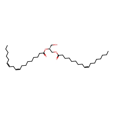 | CCSBASE_4F690EEDCF | DG(17:1/18:2) | [M+NH4]+ | 622.537 | 257.78 | OC[C@]([H])(OC(CCCCCCC/C=C\C/C=C\CCCCC)=O)COC(CCCCCCC/C=C\CCCCCCC)=O | Lipids and lipid-like molecules | 1 | 20 | TIMS | single field, calibrated | |