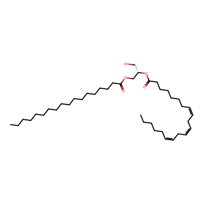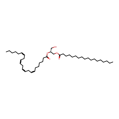 | CCSBASE_A948A22350 | DG(18:0/20:4) | [M+NH4]+ | 662.572 | 266.83 | OC[C@]([H])(OC(CCC/C=C\C/C=C\C/C=C\C/C=C\CCCCC)=O)COC(CCCCCCCCCCCCCCCCC)=O | Lipids and lipid-like molecules | 1 | 20 | TIMS | single field, calibrated | |