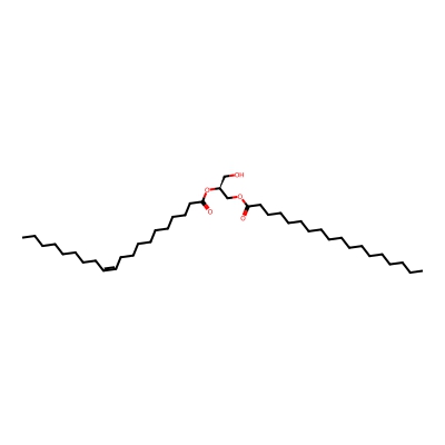 | CCSBASE_031E69BB1C | DG(18:0/20:1) | [M+NH4]+ | 668.617 | 271.85 | OC[C@]([H])(OC(CCCCCCCCC/C=C\CCCCCCCC)=O)COC(CCCCCCCCCCCCCCCCC)=O | Lipids and lipid-like molecules | 1 | 20 | TIMS | single field, calibrated | |