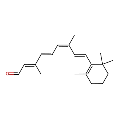 | CCSBASE_810D449461 | 9-cis-Retinal | [M+H]+ | 285.2218 | 170.1 | CC1=C(C(CCC1)(C)C)/C=C/C(=C\C=C\C(=C\C=O)\C)/C | Lipids and lipid-like molecules | 1 | 4 | DT | single field, calibrated with Agilent tune mix (Agilent) | |