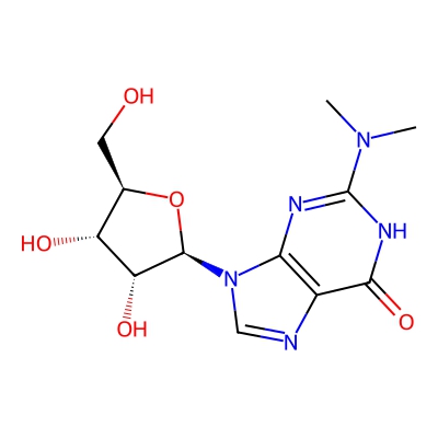 | CCSBASE_4AA55D65FA | N2,N2-Dimethylguanosine | [M+H]+ | 312.1308 | 170.6 | CN(C)C1=NC2=C(C(=O)N1)N=CN2[C@H]3[C@@H]([C@@H]([C@H](O3)CO)O)O | Nucleosides, nucleotides, and analogues | 1 | 4 | DT | single field, calibrated with Agilent tune mix (Agilent) | |