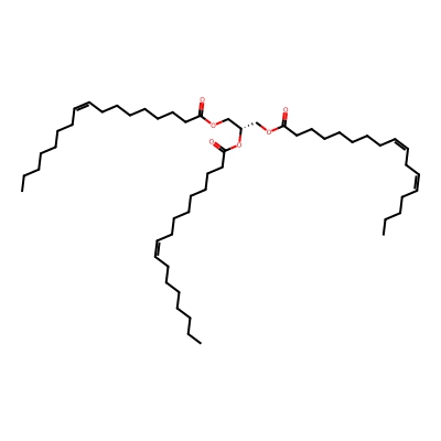 | CCSBASE_86F3AE62B1 | TG(17:1/17:1/17:2) | [M+NH4]+ | 858.754 | 311.67 | C(OC(=O)CCCCCCC/C=C\C/C=C\CCCC)[C@]([H])(OC(CCCCCCC/C=C\CCCCCCC)=O)COC(CCCCCCC/C=C\CCCCCCC)=O | Lipids and lipid-like molecules | 1 | 20 | TIMS | single field, calibrated | |