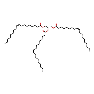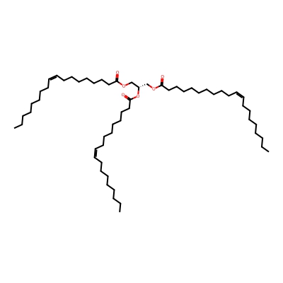 | CCSBASE_12472B9BF9 | TG(18:1/18:1/20:1) | [M+NH4]+ | 930.85 | 323.0 | C(OC(=O)CCCCCCCCC/C=C\CCCCCCCC)[C@]([H])(OC(CCCCCCC/C=C\CCCCCCCC)=O)COC(CCCCCCC/C=C\CCCCCCCC)=O | Lipids and lipid-like molecules | 1 | 20 | TIMS | single field, calibrated | |