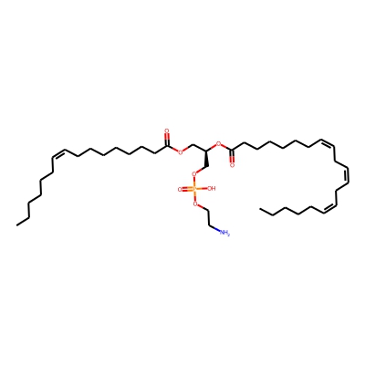 | CCSBASE_E7FD714335 | PE(36:4) | [M+Na]+ | 762.5 | 280.6 | [C@](COP(=O)(O)OCCN)([H])(OC(CCCCCC/C=C\C/C=C\C/C=C\CCCCC)=O)COC(CCCCCCC/C=C\CCCCCC)=O | lipid | 1 | 1 | DT | stepped-field | |