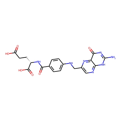 | CCSBASE_462F9A246F | Folate | [M+H]+ | 442.1475 | 195.5 | C1=CC(=CC=C1C(=O)N[C@@H](CCC(=O)O)C(=O)O)NCC2=CN=C3C(=N2)C(=O)N=C(N3)N | small molecule | 1 | 4 | DT | single field, calibrated with Agilent tune mix (Agilent) |