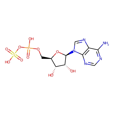 | CCSBASE_8F145F962B | Adenosine 5'-phosphosulfate | [M+Na]+ | 450.0097 | 190.4 | C1=NC2=C(C(=N1)N)N=CN2[C@H]3[C@@H]([C@@H]([C@H](O3)COP(=O)(O)OS(=O)(=O)O)O)O | small molecule | 1 | 4 | DT | single field, calibrated with Agilent tune mix (Agilent) | |