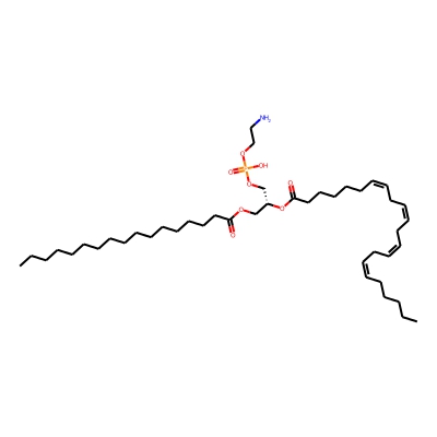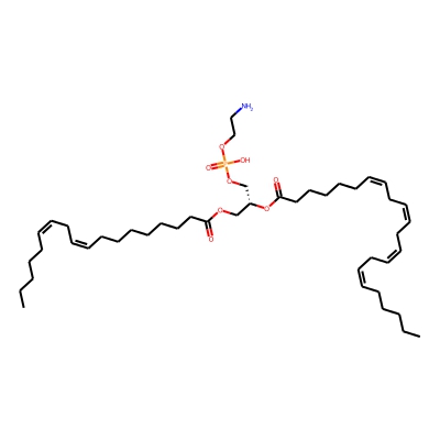 | CCSBASE_43BF53E496 | PE(39:4) | [M+Na]+ | 804.55 | 292.8 | [C@](COP(=O)(O)OCCN)([H])(OC(CCCCC/C=C\C/C=C\C/C=C\C/C=C\CCCCC)=O)COC(CCCCCCCCCCCCCCCC)=O | lipid | 1 | 1 | DT | stepped-field | |