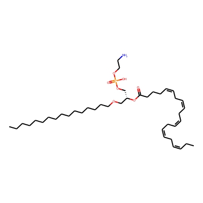 | CCSBASE_4C5A91937E | PE(o36:5) | [M+Na]+ | 746.51 | 279.2 | [C@](COP(=O)(O)OCCN)([H])(OC(CCC/C=C\C/C=C\C/C=C\C/C=C\C/C=C\CC)=O)COCCCCCCCCCCCCCCCC | lipid | 1 | 1 | DT | stepped-field | |
