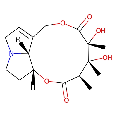 | CCSBASE_4D6730AA2B | Monocrotaline | [M+H]+ | 326.1603 | 171.5 | C[C@H]1C(=O)O[C@@H]2CCN3[C@@H]2C(=CC3)COC(=O)[C@]([C@]1(C)O)(C)O | small molecule | 1 | 26 | DT | single field, calibrated | |