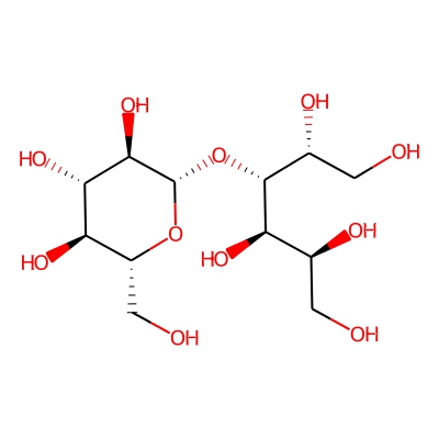 | CCSBASE_83508C1ED0 | Glucitol-4-gucopyanoside | [M+Na]+ | 367.1217 | 173.0 | C([C@@H]1[C@H]([C@@H]([C@H]([C@@H](O1)O[C@H]([C@@H](CO)O)[C@@H]([C@H](CO)O)O)O)O)O)O | small molecule | 1 | 26 | DT | single field, calibrated | |