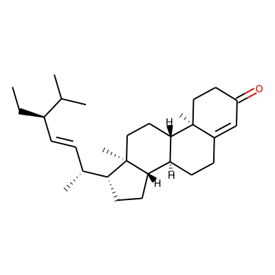 | CCSBASE_0B461D30BB | Stigmasta-4,22-dien-3-one | [M+K]+ | 449.3186 | 204.9 | CC[C@H](/C=C/[C@@H](C)[C@H]1CC[C@@H]2[C@@]1(CC[C@H]3[C@H]2CCC4=CC(=O)CC[C@]34C)C)C(C)C | small molecule | 1 | 26 | DT | single field, calibrated | |