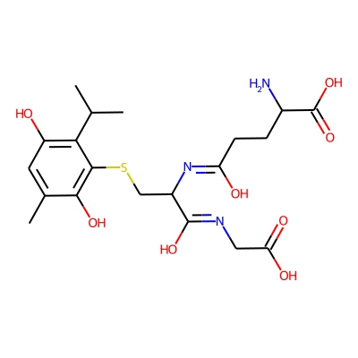 | CCSBASE_DFED2FA4E1 | Thymoquinone_met009 | [M+H]+ | 472.1753 | 205.2 | Cc1cc(O)c(C(C)C)c(SCC(N=C(O)CCC(N)C(=O)O)C(O)=NCC(=O)O)c1O | small molecule | 1 | 26 | DT | single field, calibrated | |