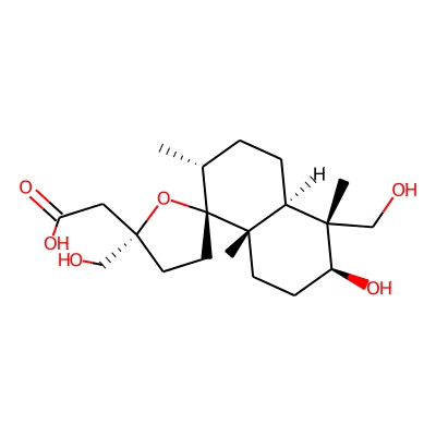 | CCSBASE_9526C13BF7 | Lagochilin_met007 | [M+Na]+ | 393.2253 | 181.9 | C[C@@H]1CC[C@@H]2[C@](C)(CC[C@H](O)[C@@]2(C)CO)[C@@]12CC[C@@](CO)(CC(=O)O)O2 | small molecule | 1 | 26 | DT | single field, calibrated |