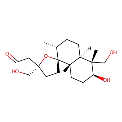 | CCSBASE_1847D69DBD | Lagochilin_met001 | [M+Na]+ | 377.2304 | 179.5 | C[C@@H]1CC[C@@H]2[C@](C)(CC[C@H](O)[C@@]2(C)CO)[C@@]12CC[C@@](CO)(CC=O)O2 | small molecule | 1 | 26 | DT | single field, calibrated | |