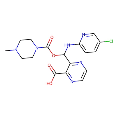 | CCSBASE_63087F0A59 | Zopiclone_met012 | [M+Na]+ | 429.1054 | 193.3 | CN1CCN(C(=O)OC(Nc2ccc(Cl)cn2)c2nccnc2C(=O)O)CC1 | small molecule | 1 | 26 | DT | single field, calibrated | |