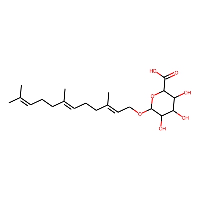 | CCSBASE_7C8C970DB3 | Farnesol_met004 | [M+Na]+ | 421.2203 | 190.7 | CC(C)=CCC/C(C)=C/CC/C(C)=C/COC1OC(C(=O)O)C(O)C(O)C1O | small molecule | 1 | 26 | DT | single field, calibrated | |