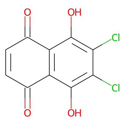 | CCSBASE_29831771EC | 2-3-dichloro-5-8-dihydroxynapthoquinone | [M+H-H2O]+ | 240.9459 | 144.2 | C1=CC(=O)C2=C(C1=O)C(=C(C(=C2O)Cl)Cl)O | small molecule | 1 | 26 | DT | single field, calibrated | |