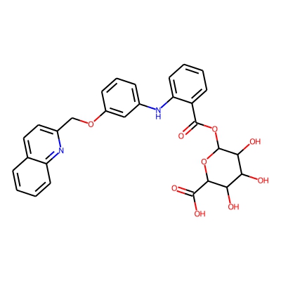 | CCSBASE_1FEC5D5C64 | Sr-2640_met008 | [M+H]+ | 547.1716 | 211.4 | O=C(OC1OC(C(=O)O)C(O)C(O)C1O)c1ccccc1Nc1cccc(OCc2ccc3ccccc3n2)c1 | small molecule | 1 | 26 | DT | single field, calibrated | |