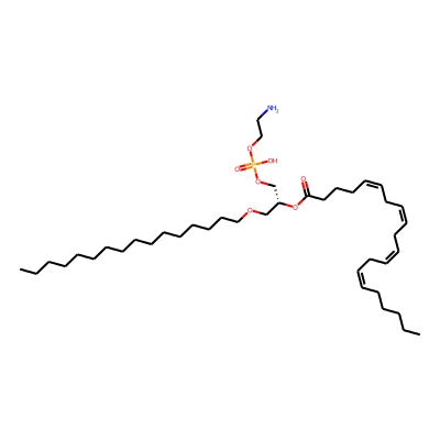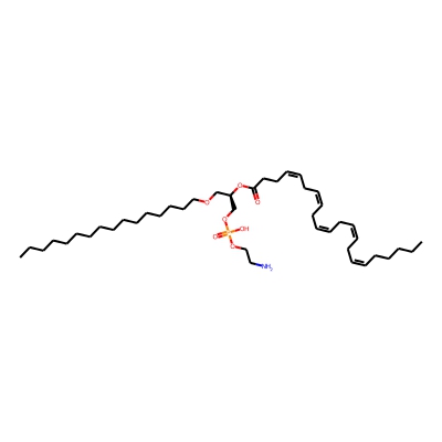 | CCSBASE_350EDCD5F1 | PE(o38:5) | [M+K]+ | 776.54 | 285.6 | [C@](COP(=O)(O)OCCN)([H])(OC(CC/C=C\C/C=C\C/C=C\C/C=C\C/C=C\CCCCC)=O)COCCCCCCCCCCCCCCCC | lipid | 1 | 1 | DT | stepped-field | |