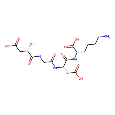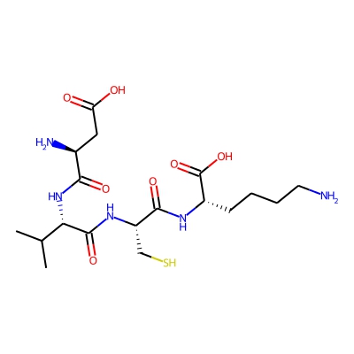 | CCSBASE_5CD0BA1F79 | DVCK | [M+H]+ | 464.22 | 204.7 | N[C@@H](CC(=O)O)C(=O)N[C@@H](C(C)C)C(=O)N[C@@H](CS)C(=O)N[C@@H](CCCCN)C(=O)O | peptide | 1 | 1 | DT | stepped-field | |