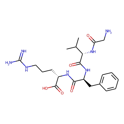 | CCSBASE_CD8EB6A880 | GVFR | [M+H]+ | 478.28 | 214.8 | NCC(=O)N[C@@H](C(C)C)C(=O)N[C@@H](CC1=CC=CC=C1)C(=O)N[C@@H](CCCNC(=N)N)C(=O)O | peptide | 1 | 1 | DT | stepped-field | |