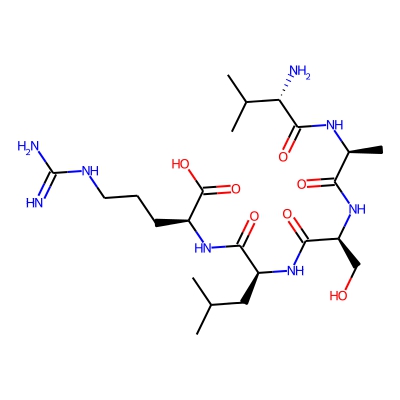 | CCSBASE_8D4D94AC12 | VASLR | [M+H]+ | 545.34 | 232.5 | N[C@@H](C(C)C)C(=O)N[C@@H](C)C(=O)N[C@@H](CO)C(=O)N[C@@H](CC(C)C)C(=O)N[C@@H](CCCNC(=N)N)C(=O)O | peptide | 1 | 1 | DT | stepped-field | |