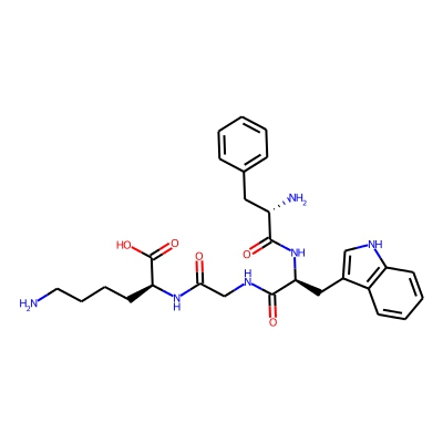| CCSBASE_0362A73A0A | FWGK | [M+H]+ | 537.28 | 231.0 | N[C@@H](CC1=CC=CC=C1)C(=O)N[C@@H](CC2=CNC3=C(C=CC=C3)2)C(=O)NCC(=O)N[C@@H](CCCCN)C(=O)O | peptide | 1 | 1 | DT | stepped-field | |